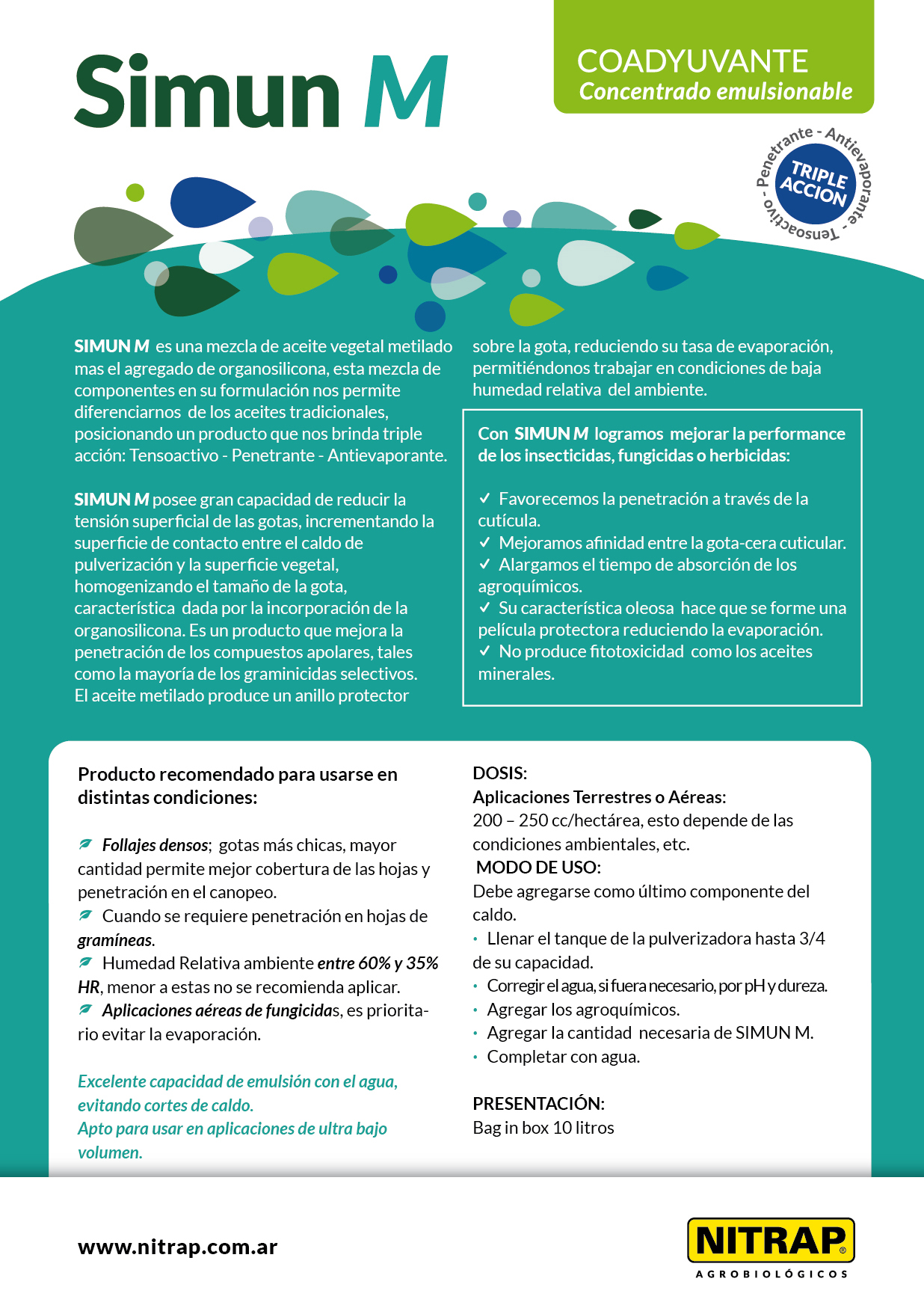 Simun M es una mezcla de aceite vegetal metilado más el agregado de organo-siliconas.